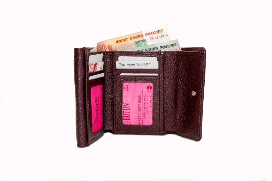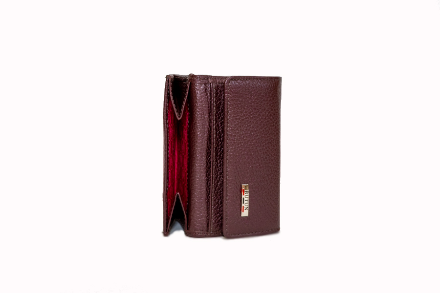 Компактный женский кошелек оригинальный и красивый из натуральной кожи высшего класса. Натуральная кожа делает кошелек очень строгим и придает статустность хозяину кошелька, а так же сохраняет его иммущество. Кошелек имеет два больших отделеня для банкнот. Под верхним клапоном расположен клапан закрывающий отделение для монет. Кошелек мягкий и приятный на ощупь. В основном отделении расположены кармашки для визиток и пластиковых карт в количестве шести штук. Два отделения могут использоваться для календарей или небольших документов.